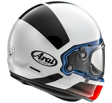 Uma caraterística dos capacetes da Arai é a sua forma redonda, que em caso de queda leva a um deslizamento mais fluido, reduzindo a energia do impacto, mas aumentando a segurança do piloto.