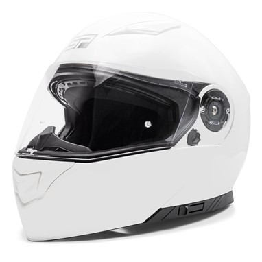 Um capacete em ABS, com sistema de retenção de aperto rápido e ajuste micrométrico, com homologação P/J e viseira solar, a um preço muito em conta.