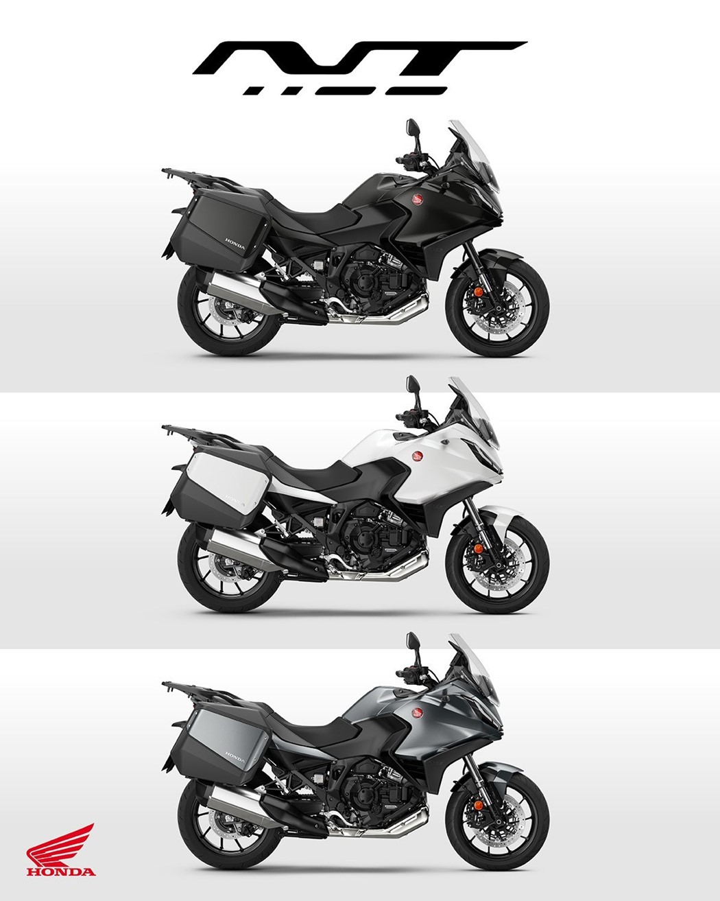 Para 2023, a NT1100 vai estar disponível na nova cor Preto Metalizado Gunmetal, bem como em Cinzento Metalizado Mate Iridium e Branco Pérola Glare