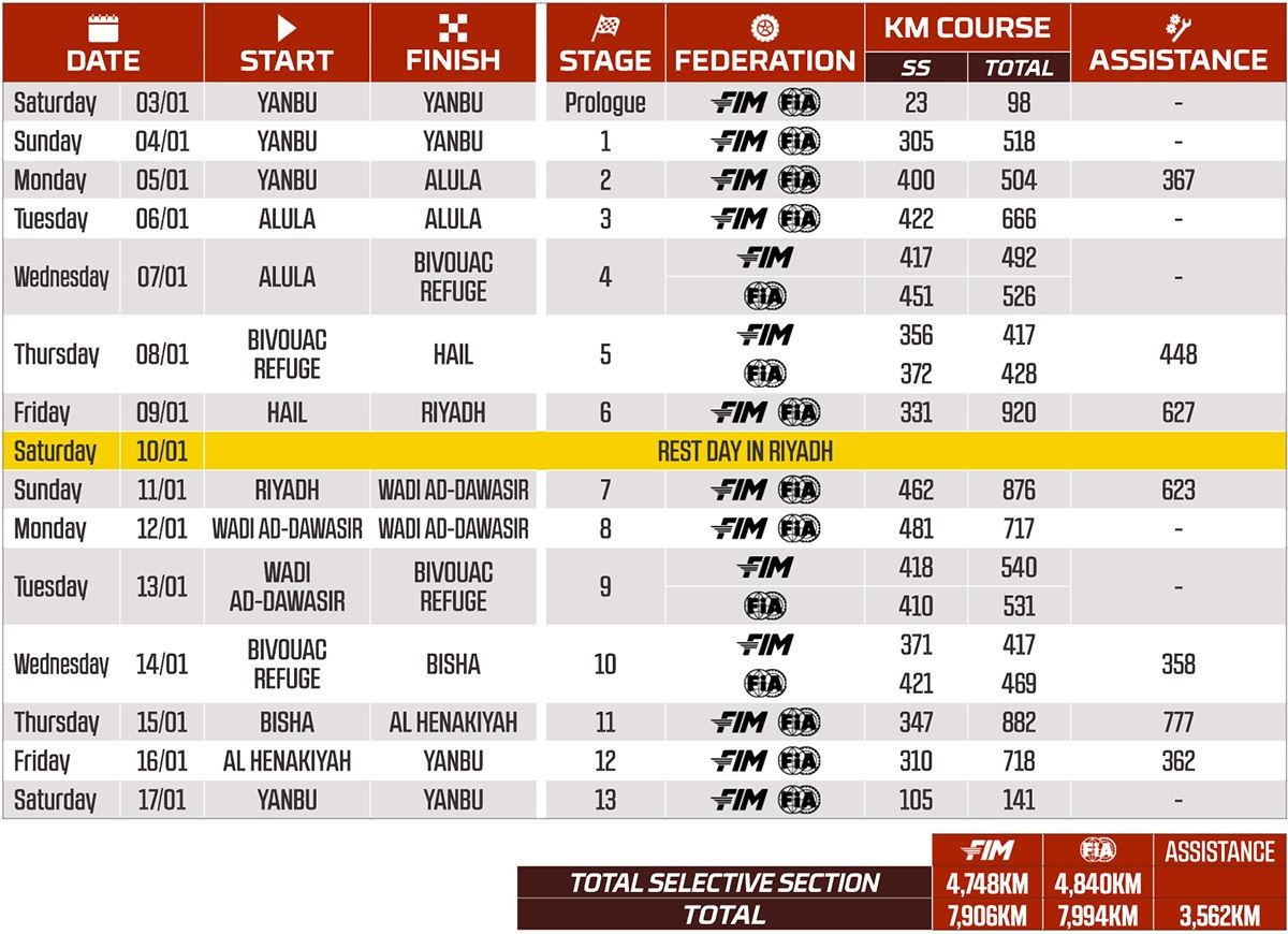 Num percurso que mais parece um laço, que começa e termina na região de Yanbu (junto ao Mar Vermelho), num total de cerca de 8.000 kms, dos quais cerca de 4.900 kms vão ser cronometrados, tudo vai estar a postos para mais uma edição do Rali mais duro do mundo e o diretor da prova, David Castera, já avisou que não vai ser fácil.