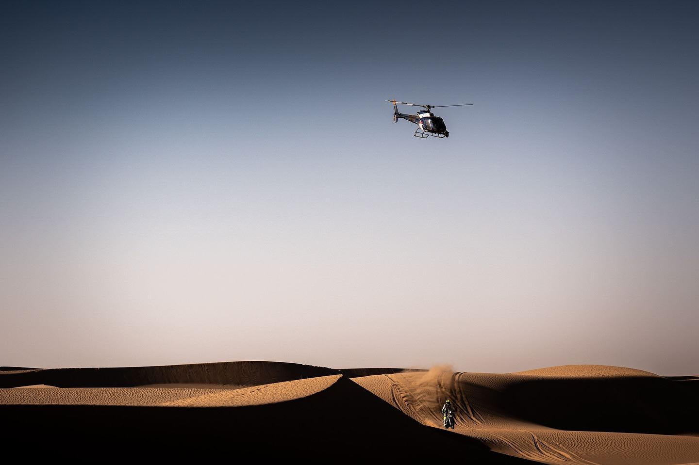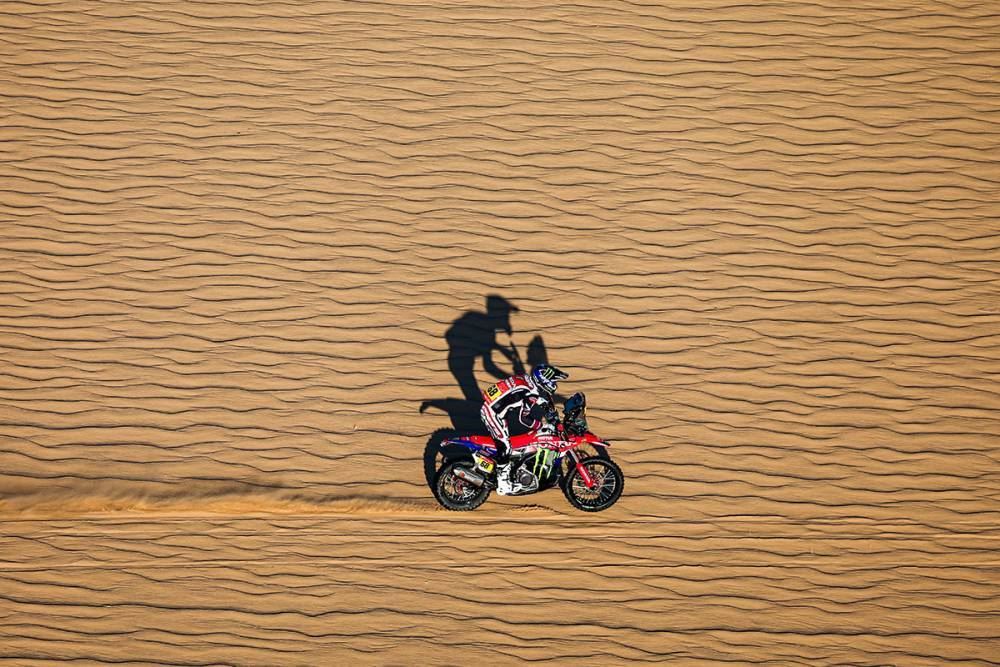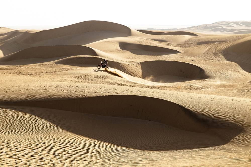 O dia de hoje não foi dos mais longos, com um total 540 km, mas a especial foi particularmente rigorosa. Muita areia, dunas gigantes e a necessidade de não cometer erros de navegação. Foi também fundamental preservar as mecânicas das motos, uma vez que hoje não há assistência por parte das equipas e amanhã, segunda dia da maratona, também não se esperam facilidades.