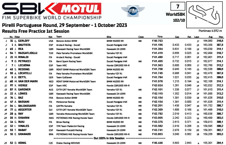 O ás americano da BMW conseguiu duas voltas rápidas com borracha nova no final da sessão para liderar na manhã de sexta-feira, com Bautista, Rea e Razgatlioğlu logo a seguir.