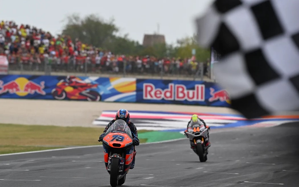 Ai Ogura e Aron Canet foram os grande animadores da corrida de Moto2. Depois do domínio inicial de Tony Arbolino, que saíra da Pole Position, aqueles dois terminaram separados por menos de um segundo na linha de meta. A vantagem foi para o piloto japonês (que para o ano estará no MotoGP com a Trackhouse) e que assim assume a liderança do campeonato, 9 pontos à frente de Sergio Garcia.