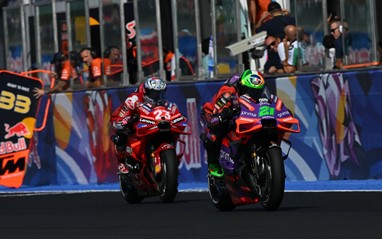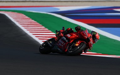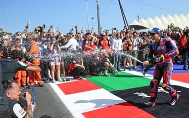 Dominador numa corrida que não previa vir a correr-lhe bem, devido à queda na qualificação e consequente má posição na grelha (P9), o espanhol tirou o melhor partido das condições instáveis do chove-não-chove e de uma pista atípica a nível de aderência, para se impor, com autoridade, a Bagnaia e Bastianini, os ‘oficiais’ de Panigale.