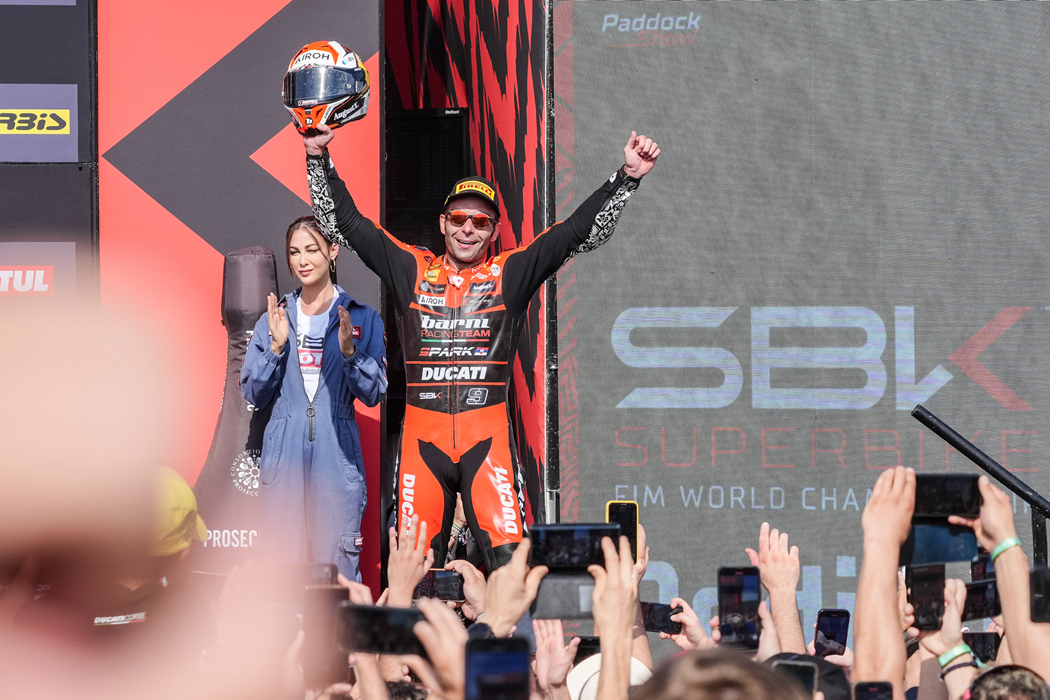 Danilo Petrucci, aos comandos de uma Ducati Panigale V4R da BARNI SPARK RACING TEAM faz o “Hat-Trick” em Cremona, demonstrando ao longo de todo o fim de semana um ritmo que a concorrência não conseguiu acompanhar.
