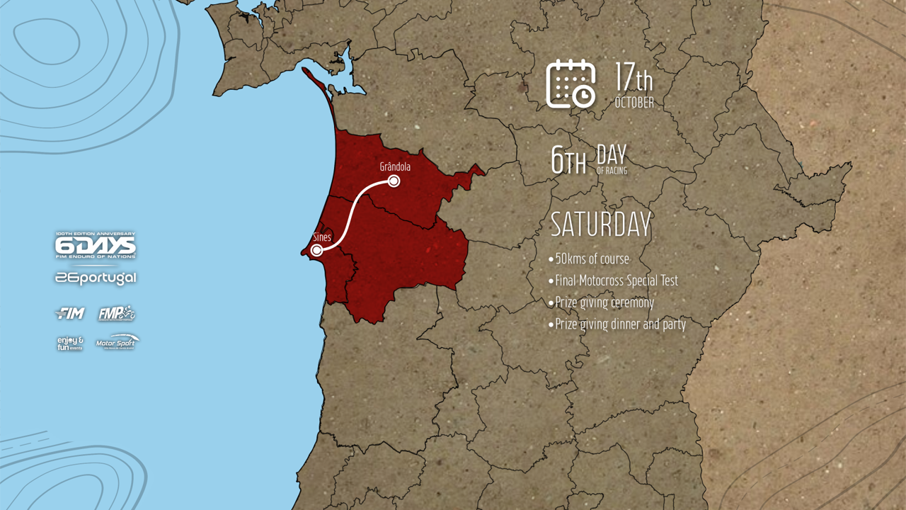 Portugal foi o país escolhido para celebrar estes ‘Seis Dias’ centenários, que irão decorrer no Litoral Alentejano entre os dias 12 e 17 de outubro de 2026, com organização e promoção a cargo da empresa Enjoy & Fun, coordenação desportiva do clube Motor Sport Vila Nova de Santo André e supervisão da FIM e FMP.