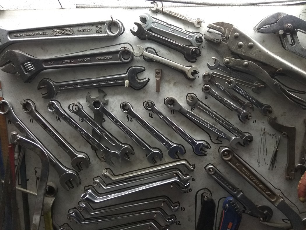 E a própria aquisição de ferramenta torna-se numa escalada, contemplando itens mais sofisticados à medida que a necessidade e a nossa capacidade nos permite enfrentar trabalhos mais complexos. O primeiro alicate de freios, ou chave de impacto, mais tarde já na competição o primeiro alicate NATO para arame de frear… Aqui devo confessar que tinha uma filosofia própria – dada a minha, durante muitos anos, ignorância prática, senão teórica, quase total, das partes internas de um motor –– operava uma simples divisão de trabalho: Motor, eles, ciclística, eu. Assim, mudar ou ajustar correntes, ou pastilhas tornou-se rotina, coisas como rolamentos de embraiagem ou distribuição confiava a uma oficina.