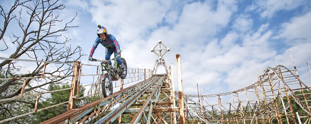 Veja aqui a mais recente e provavelmente louca aventura do multi-campeão de Trial, a andar de moto numa montanha russa abandonada.