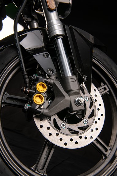A travagem conta com um sistema combinado (CBS) que reparte a potência entre as duas rodas, para minimizar a distância de travagem.