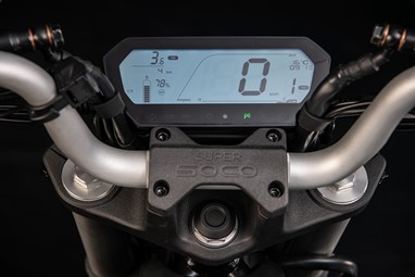 A performance da Super Soco TS “Street Hunter” deriva de um motor de 2500W, capaz de desenvolver um binário de 180Nm de resposta instantânea. Dispõe de 3 modos de condução e tem a velocidade máxima limitada a 75km/h.