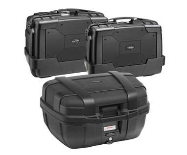 Malas laterais KGR33NN e KGR46NN: disponíveis com capacidades de 33 e 46 litros, são vendidas individualmente ou em pares. Ambas utilizam o mesmo tecnopolímero reforçado com fibra de vidro e o sistema de fixação Monokey, oferecendo segurança e uma fácil montagem.