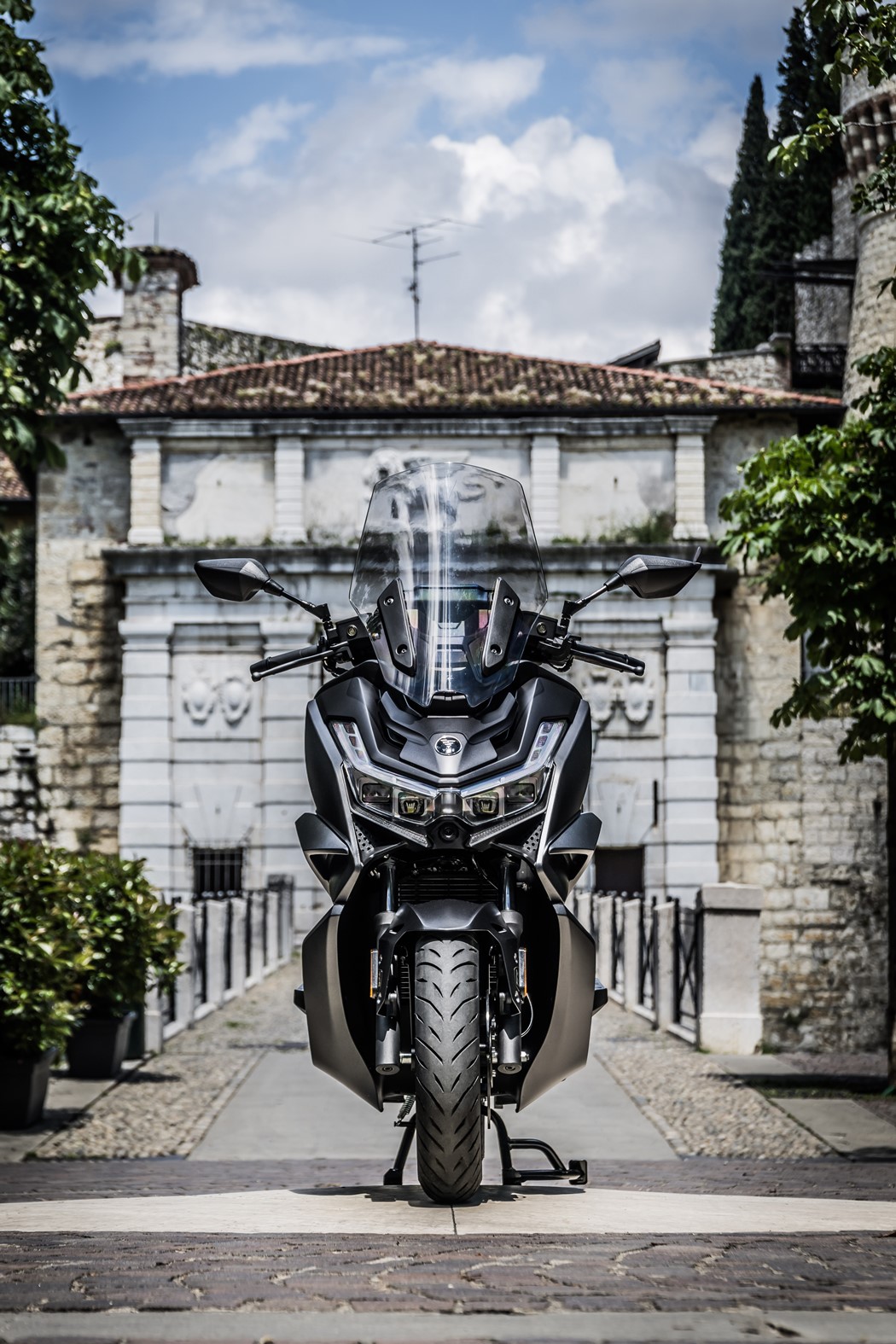 As jantes de 14 e 13 polegadas, a distância entre eixos de 1.525 mm e o assento baixo de 770 mm conferem-lhe acessibilidade e estabilidade. Este modelo vem equipado com ecrã TFT de alto contraste, punhos aquecidos, para-brisas regulável, controlo de tração TCS e ABS de duplo canal.