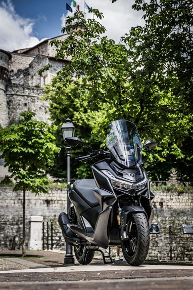 Entre as suas características premium destacam-se o arranque sem chave (keyless), iluminação Full LED, painel de instrumentos LCD com navegação Turn by Turn e uma câmera HD integrada. O compartimento sob o assento permite guardar um capacete integral, e a scooter inclui ainda uma tomada USB no porta-luvas.