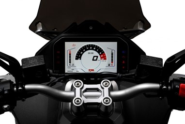 A ADX 300 destaca-se ainda pelo seu sistema de iluminação LED, composto por quatro projetores e iluminação DRL em forma de V, criando um visual marcante e moderno. O painel de instrumentos TFT LCD de 7 polegadas apresenta três estilos de visualização e alterna automaticamente entre modos diurno e noturno, garantindo uma leitura clara em qualquer condição de luminosidade.