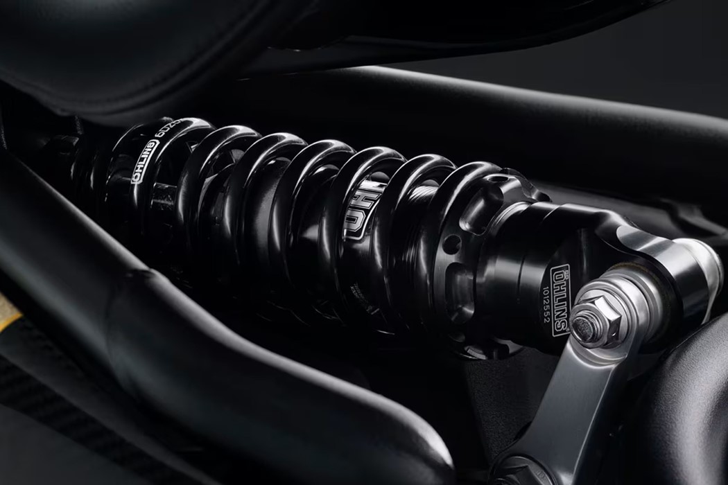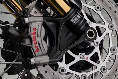 A suspensão Öhlins totalmente ajustável, com uma forquilha invertida com 43 mm de diâmetro e um amortecedor traseiro, tem como objetivo oferecer um comportamento desportivo e preciso. As pinças de travão radiais Brembo M50, possuem discos de 310 mm, melhorando a potência de travagem, de forma a que seja mais robusta e eficaz..