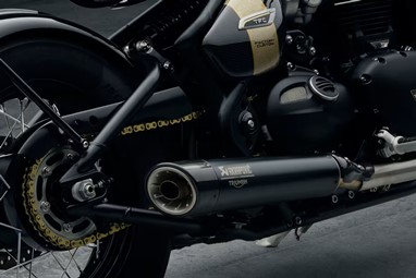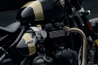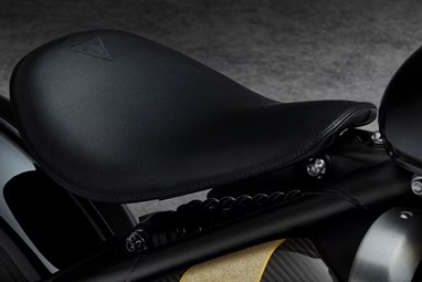 O assento em pele de alta qualidade, gravado com o logótipo triangular da Triumph, oferece não só conforto, mas também uma evidente sensação de luxo. Já o depósito de combustível, assinado à mão pelo artista, faz desta moto uma verdadeira obra-prima, elevando ainda mais a sua exclusividade.