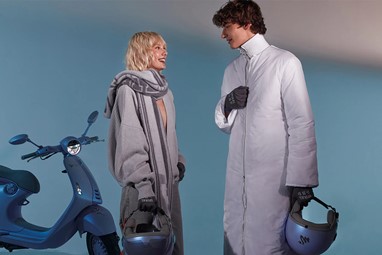No vestuário, destacam-se dois artigos-chave: um casaco longo branco, com subtis detalhes que aludem ao tema da serpente, e um casaco bomber com acabamento brilhante que reflete a luz em tons frios e cativantes, evocando a beleza das paisagens de inverno.