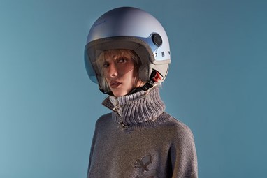 A 946 Snake é acompanhada por uma gama de acessórios pensados para combinar funcionalidade e estilo. O capacete, com interior amovível e viseira fumada, apresenta o mesmo acabamento iridescente da scooter, com um relevo cromado em forma de serpente, garantindo que segurança e estética caminham lado a lado.
