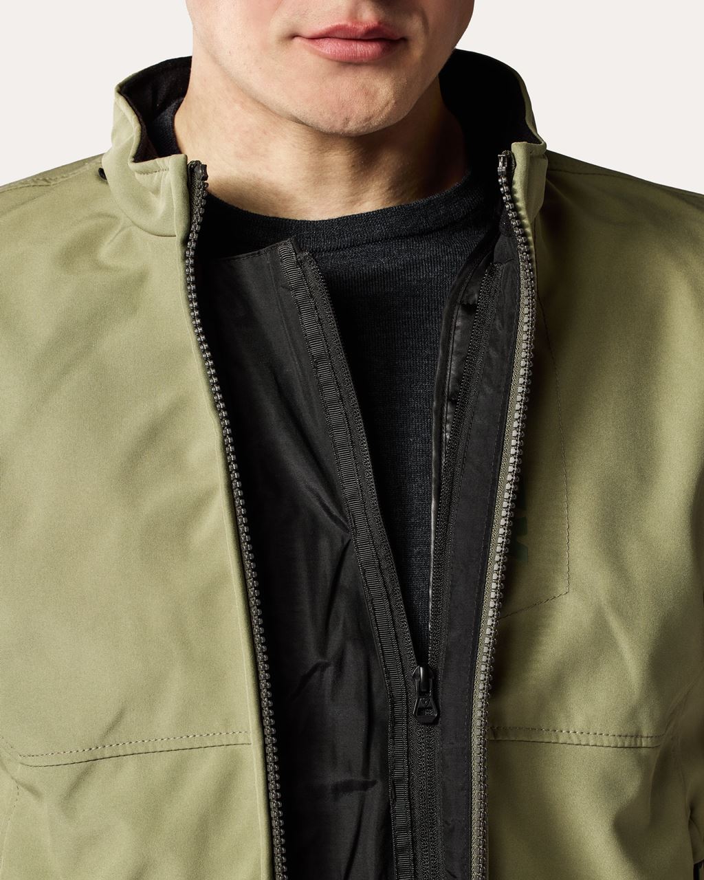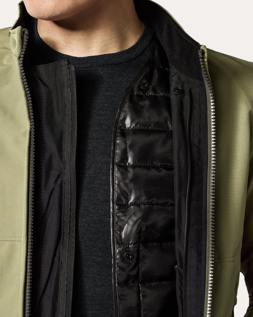 A sofisticação do modelo é meticulosamente trabalhada nos detalhes. O seu forro interior em malha (G-liner) confere uma impermeabilidade duradoura, assegurando, em simultâneo, uma notável leveza e capacidade de respirabilidade. A paleta cromática, baseada em harmonias de tons sobre tons, aliada ao desenho limpo e a fechos discretos, confere ao blusão uma elegância subtil e versátil, ideal para integrar o guarda-roupa urbano diário.