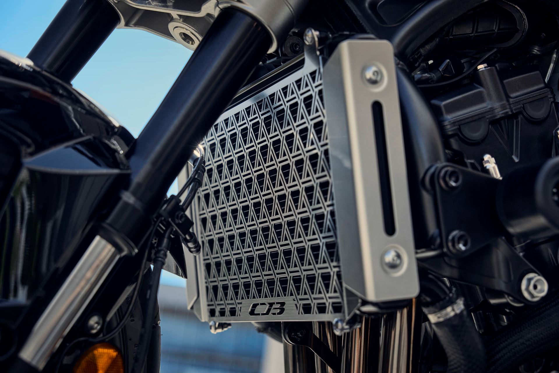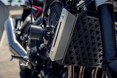 Este pack inclui uma carenagem para o farol pintada à cor da moto, disponível em preto e vermelho ou prata, uma tampa de enchimento de óleo, um jogo de autocolantes laterais para o depósito - para melhorar a aparência da moto -, uma grelha para o radiador e uma proteção para o motor - para proteção adicional -, para além de um sistema Quickshifter para mudanças suaves tanto para cima como para baixo - para melhorar a performance.