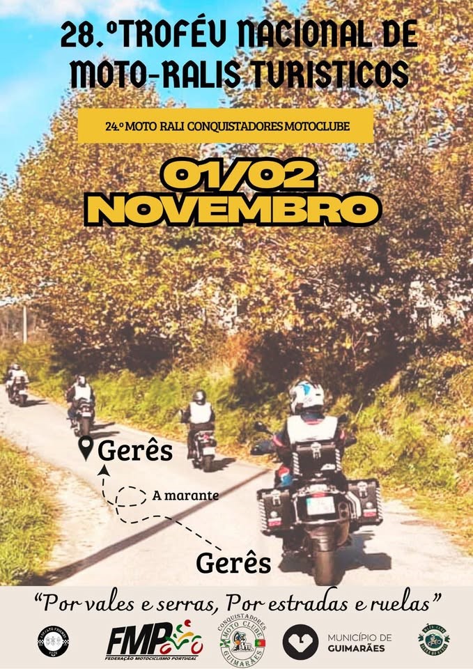 O anterior evento do 28º Troféu Nacional de Moto-Ralis Turísticos foi organizado pelo Motocruzeiro, de Bragança, sendo que agora o último evento de 2025 fica a cabo dos Conquistadores Motoclube, da Cidade Berço. Realiza-se já no próximo fim de semana e a sua denominação é “Por Vales e Serras, por Estradas e Ruelas”.