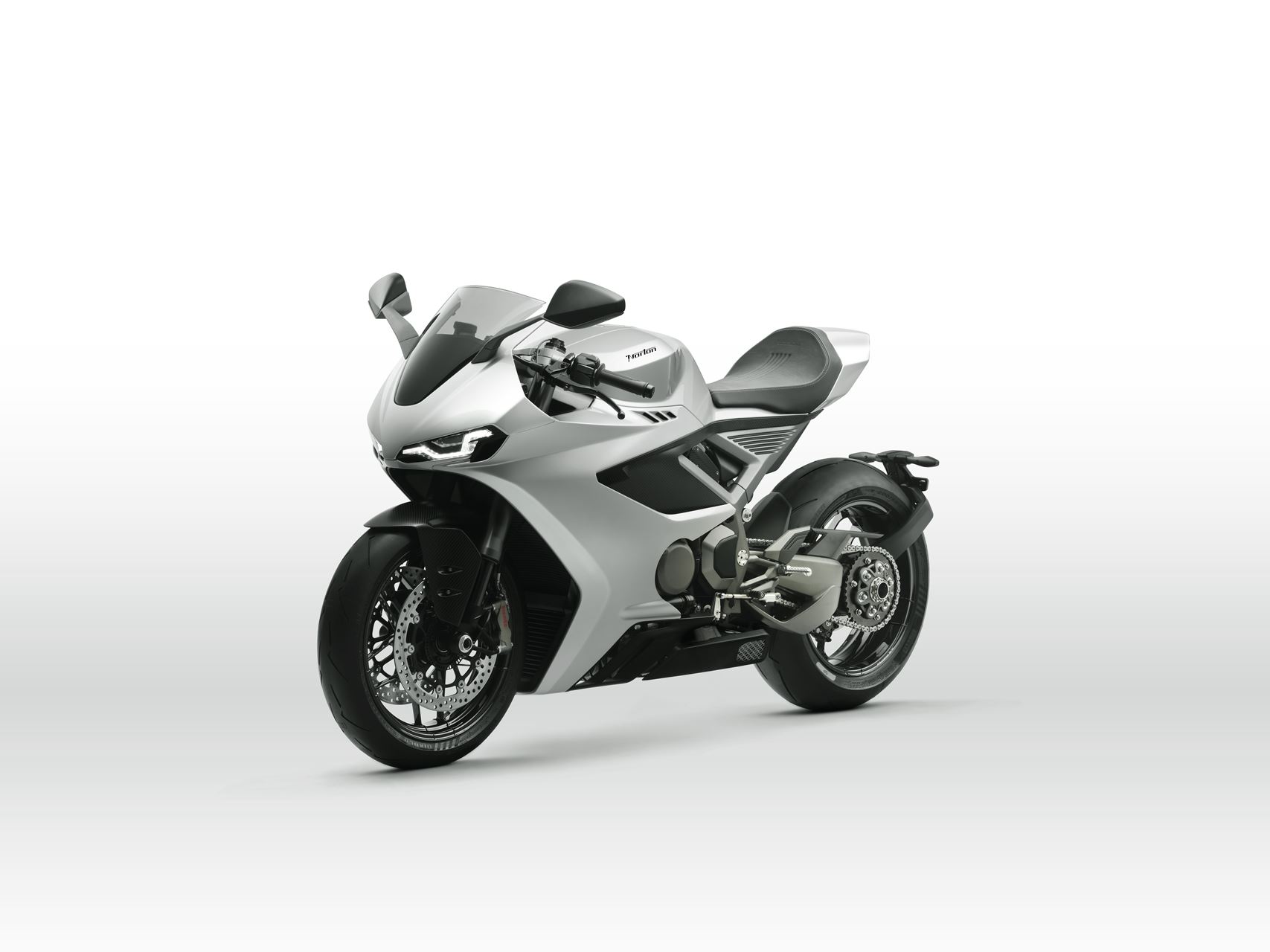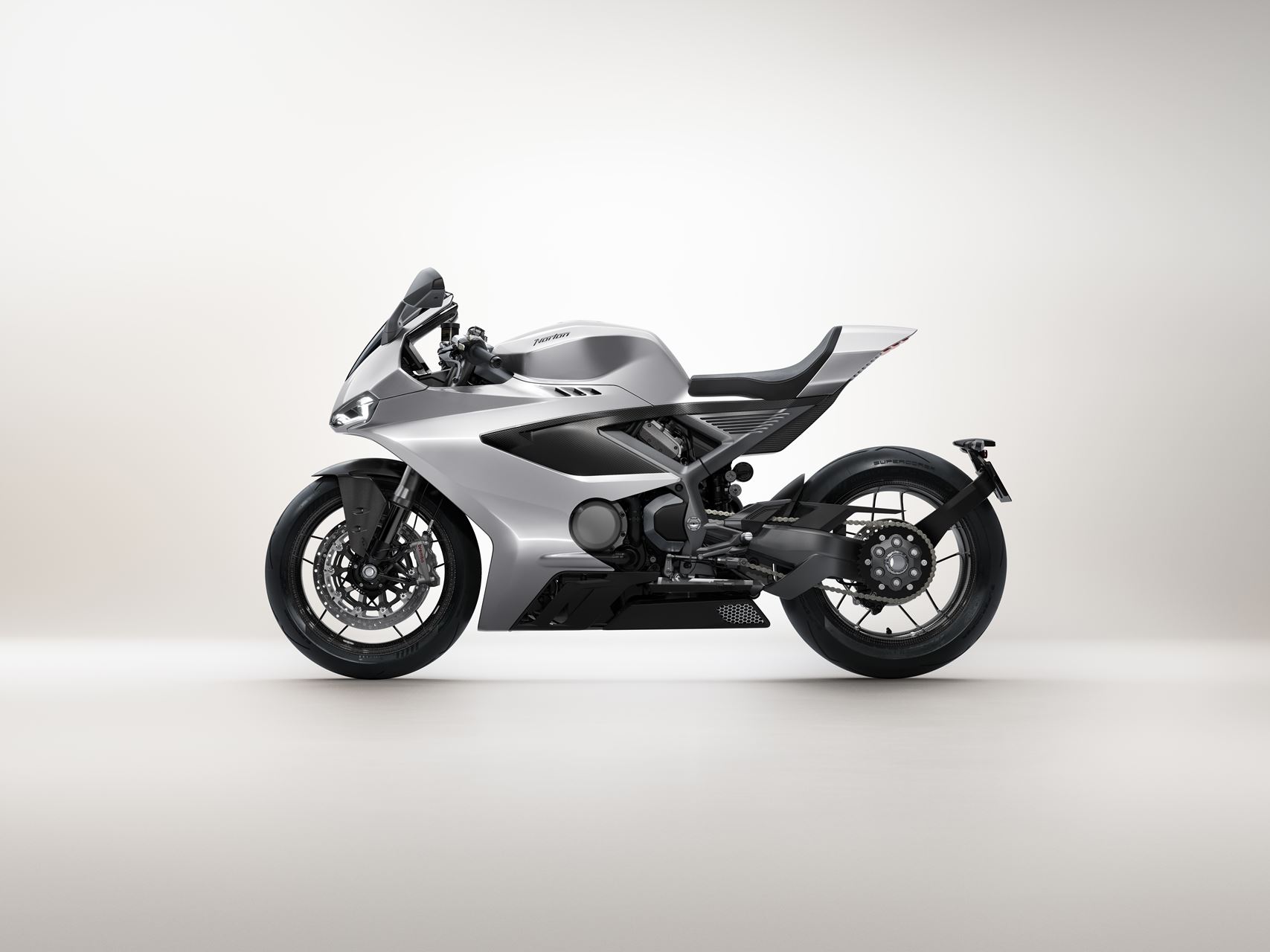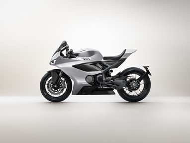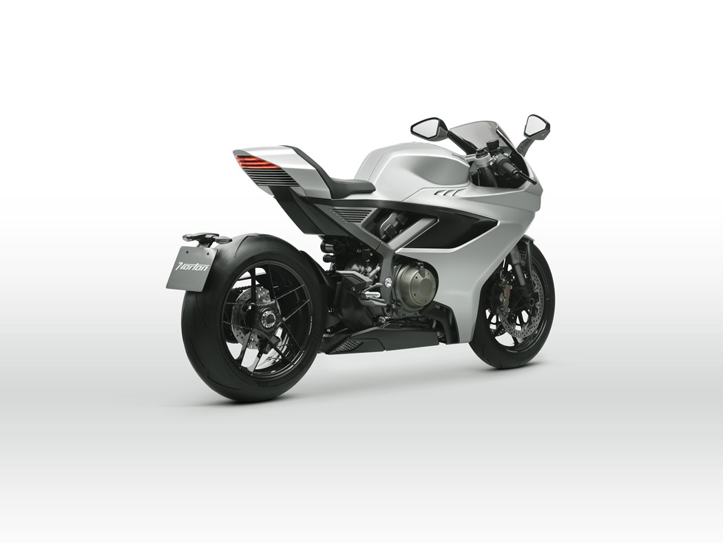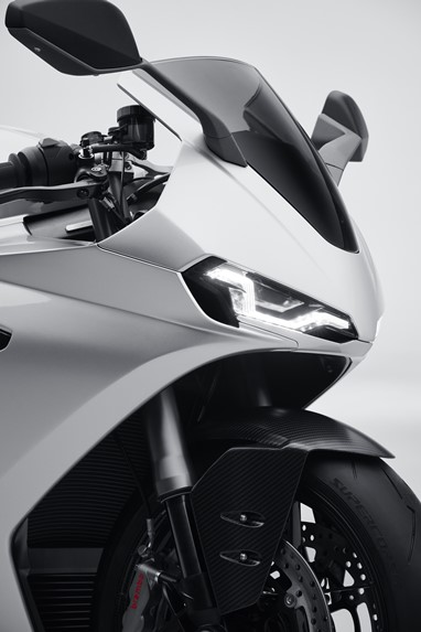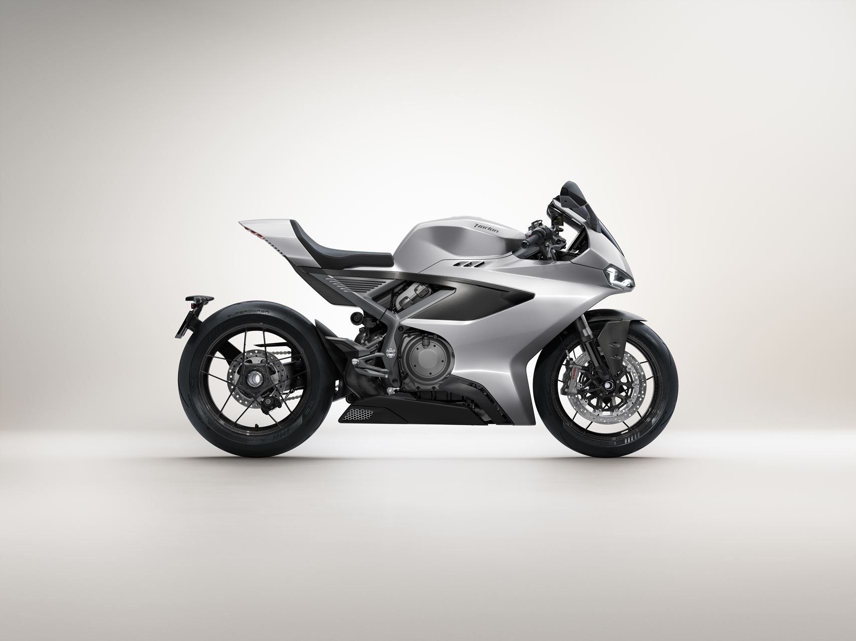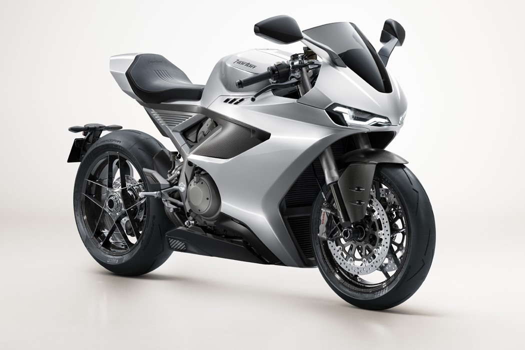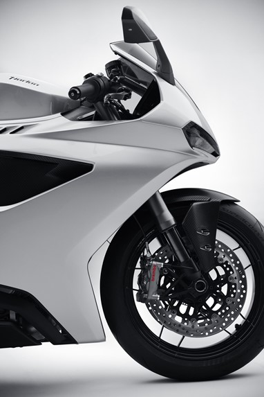 Tem p0uma suspensão semi-ativa Marzocchi, travões Brembo Hypure e componentes em fibra de carbono que a posicionam como o novo ícone da marca britânica.