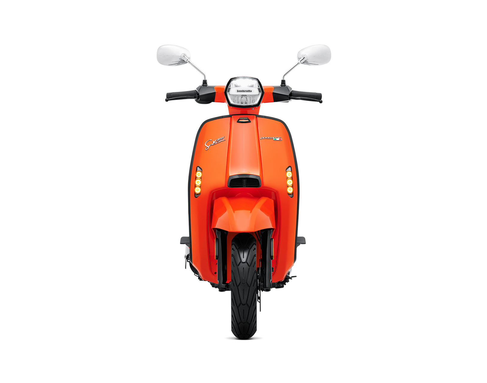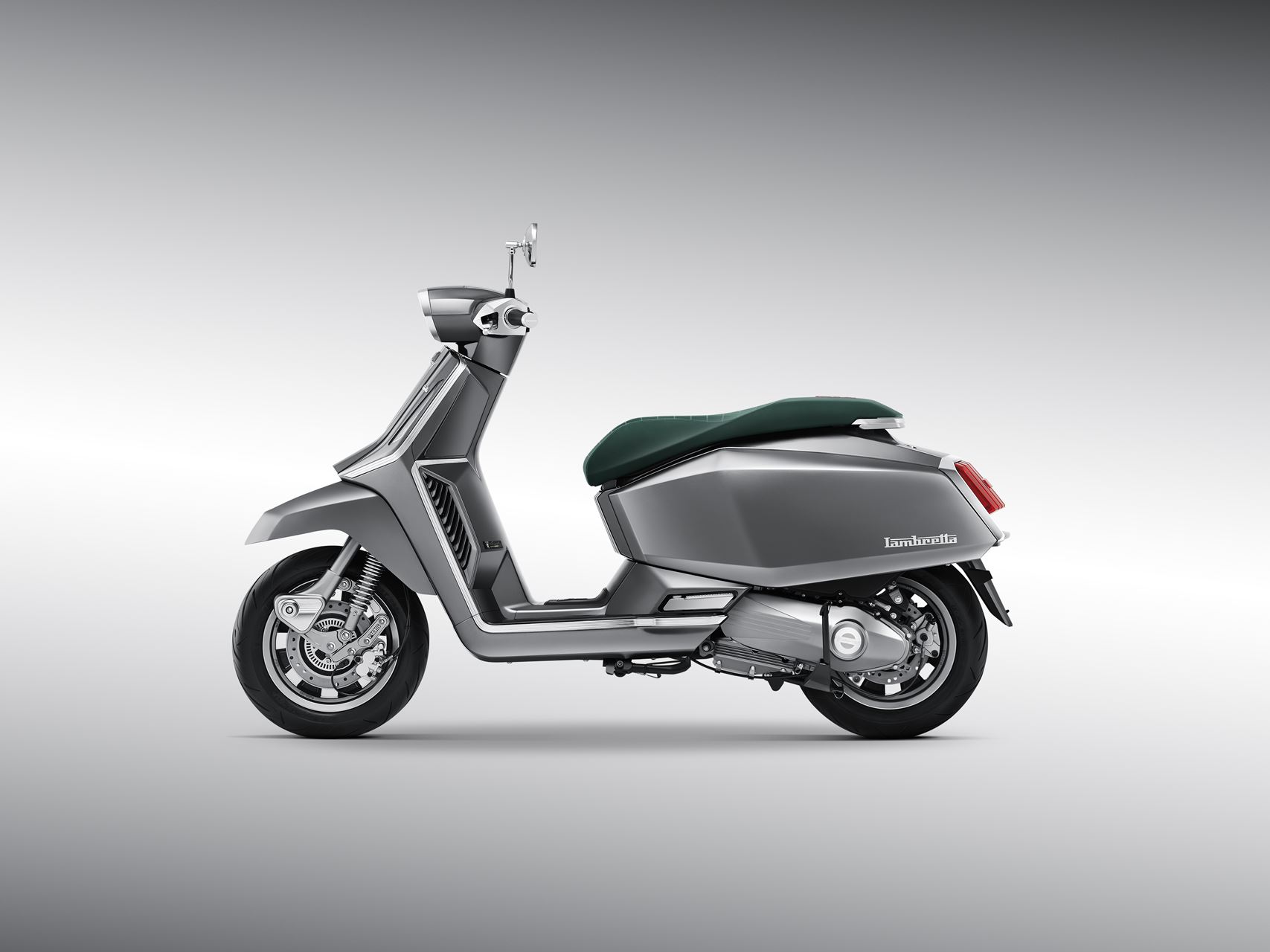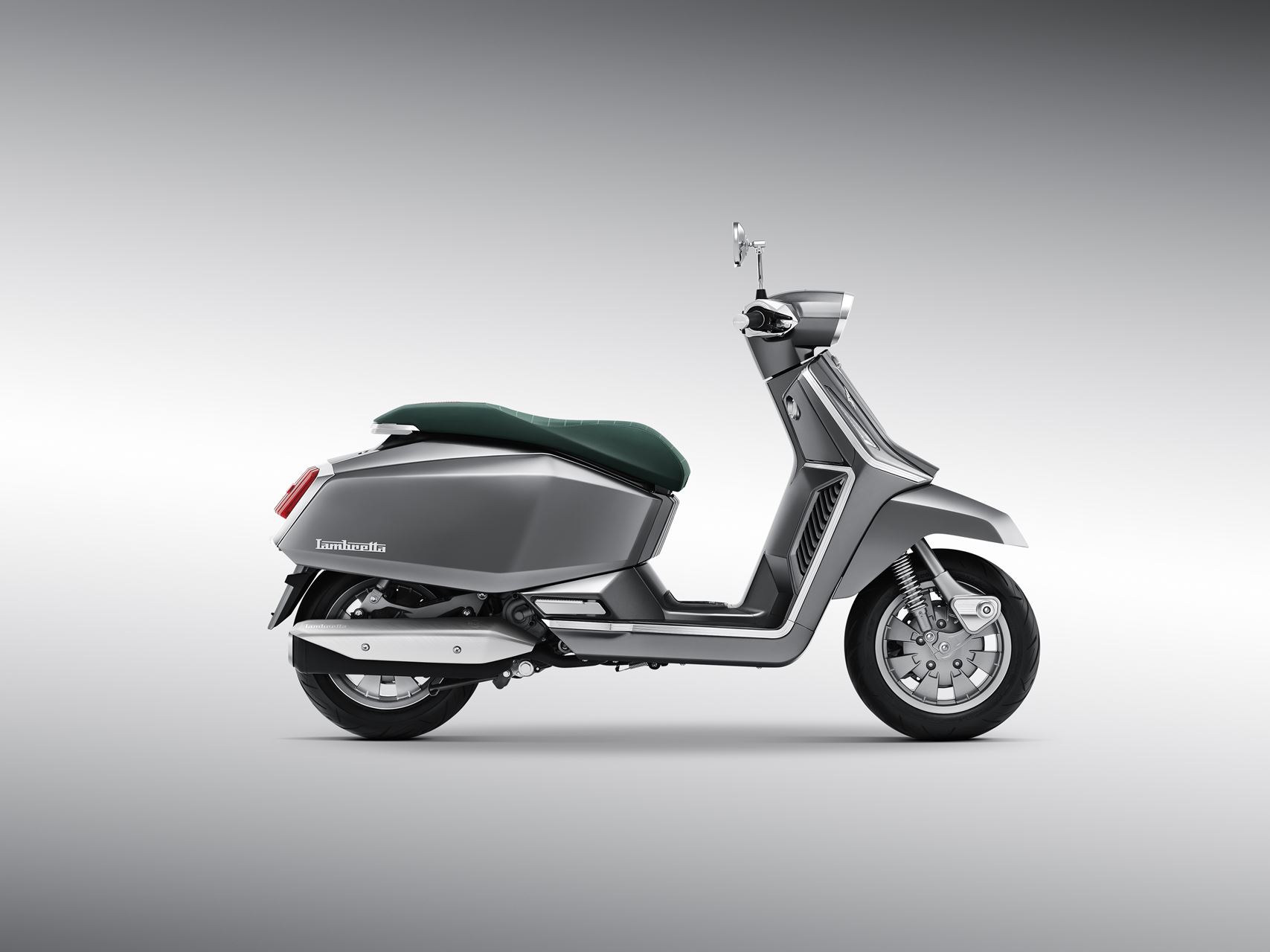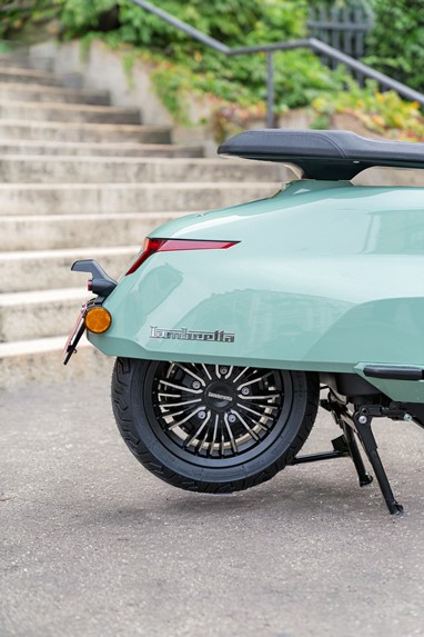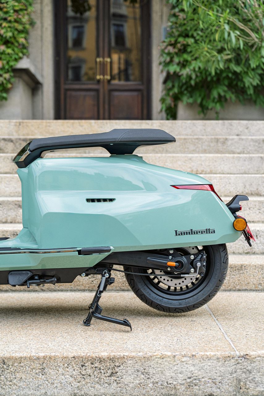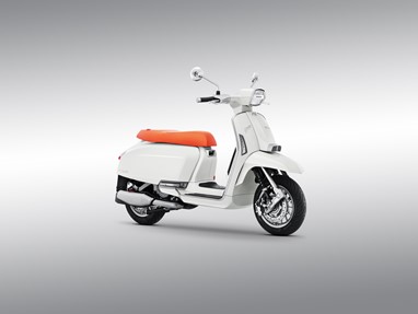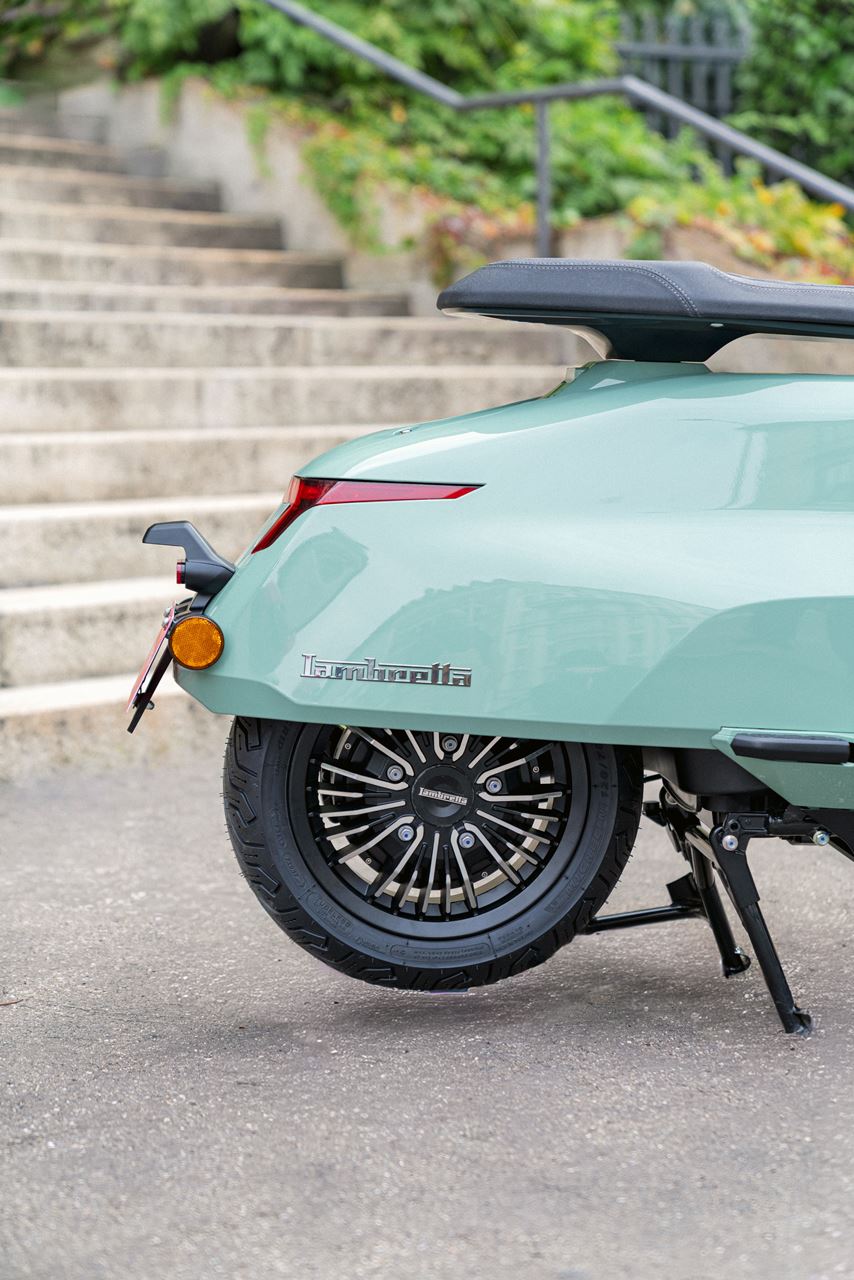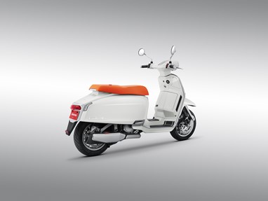 Inspirado na clássica Lambretta “J” de 1964, este novo modelo apresenta painéis laterais retangulares alongados, um farol hexagonal e um assento longo e estreito que evocam o design original. A suspensão dianteira de duplo amortecedor conta com o sistema pull wheel linkage.