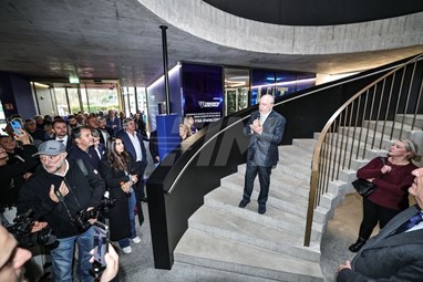 O corte da fita foi acompanhado pela presidente do Conselho de Estado de Vaud, Christelle Luisier Brodard, pelo presidente da FIM, Jorge Viegas, e pelo presidente da Câmara de Mies, Pierre-Alain Schmidt, entre outros convidados.