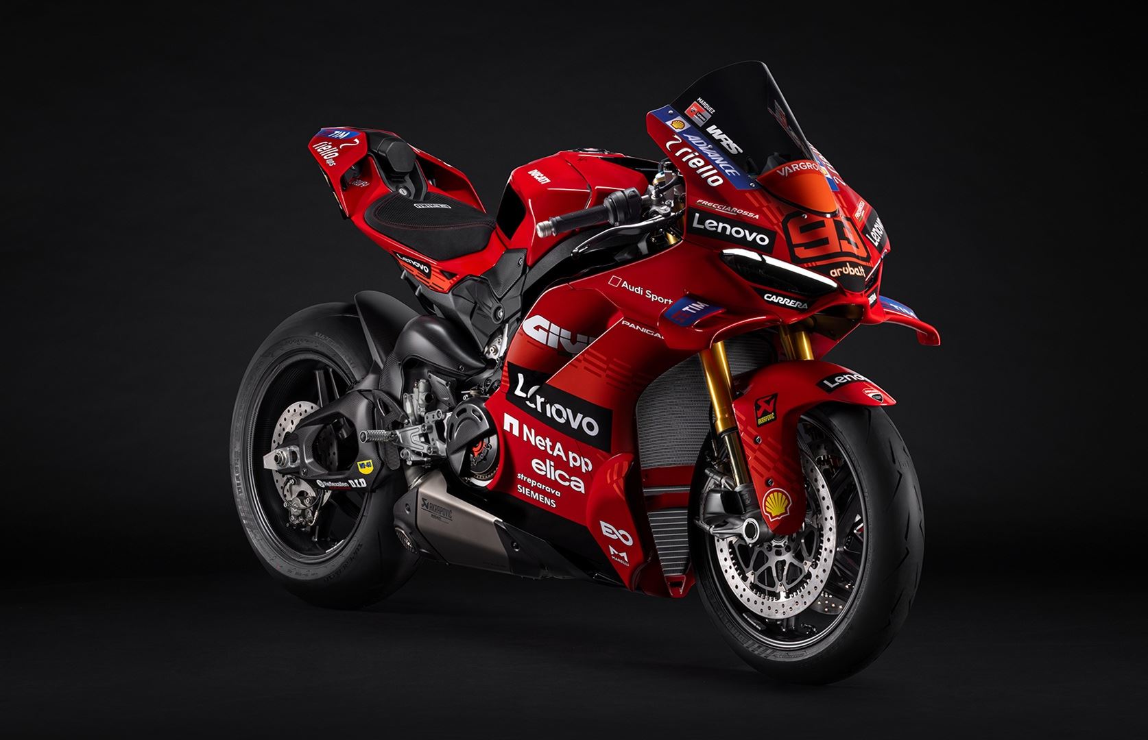 A Panigale V4 Márquez 2025 World Champion Replica tem uma pintura e gráficos que replicam os usados na Desmosedici GP25 com a qual o piloto espanhol conquistou o seu sétimo título de MotoGP, mas há muito mais. É mais leve e mais potente do que a Panigale V4 S da qual deriva, aproximando-se ainda mais de um protótipo de MotoGP.