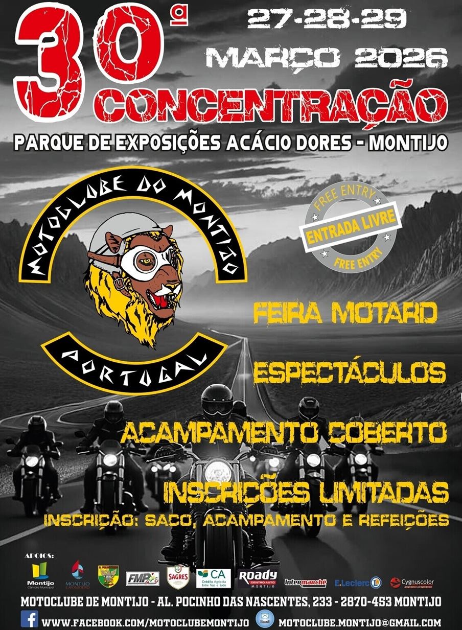 Depois da Concentração Invernal Lobos da Neve ter aberto a temporada dos eventos da Federação de Motociclismo de Portugal de 2026, agora rumamos ao Sul e para o Litoral. Assim, de 27 a 29 de março, o Moto Clube do Montijo convida para a sua 30.ª Concentração, ou seja, comemora as suas trinta primaveras.