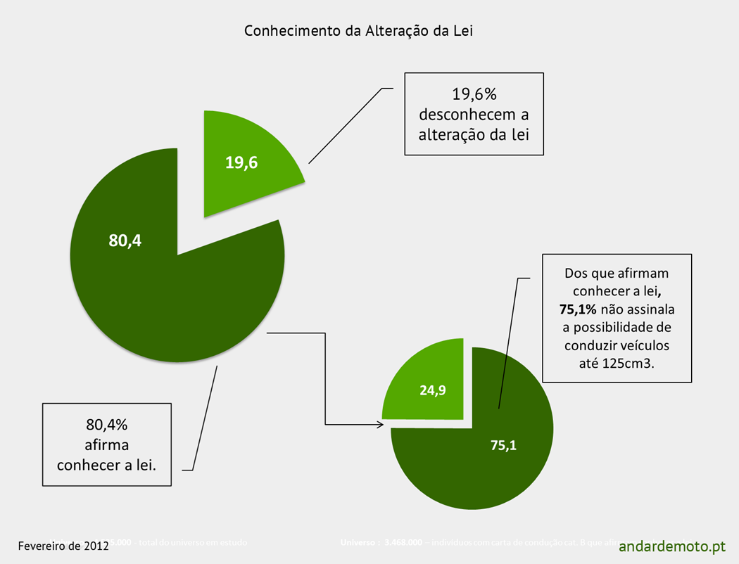 Fica isto demonstrado quando se pergunta que tipos de veículo podem conduzir com a carta de condução de automóveis ligeiros (categoria B). E a pergunta não é de resposta espontânea; sugere as várias possibilidades de resposta, nas quais está, evidentemente, referido moto/scooter com cilindrada até 125cc.