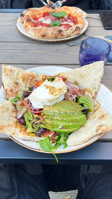 Chegados a Hamburgo, parámos para comer, eu optei por uma salada e o meu pai por uma pizza, um momento de pausa bem-vindo.