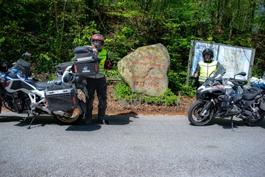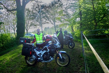 Durante uma pausa após Hamburgo, decidimos parar num caminho de terra, à procura de um momento de tranquilidade. Infelizmente, ao colocar o descanso da moto e descer dela, o suporte enterrou-se na terra mole, resultando na queda da moto. Com isso, parti um dos suportes da mala do tanque e o cabo USB que estava conectado à moto, adicionando mais um percalço à nossa viagem, mas também mais uma história para contar.