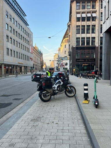 Ainda na Dinamarca, enquanto reabastecíamos as motos, fomos abruptamente surpreendidos por alarmes estridentes nos nossos telemóveis, seguidos pelo eco de sirenes por toda a cidade. Momentaneamente, acreditámos estar sob ataque, uma impressão que, em retrospectiva, nos provocaria riso. Rapidamente percebemos que se tratava apenas de um teste dos sistemas de emergência, uma prática habitual naquela cidade, mas que para nós constituiu uma fonte de tensão momentânea.