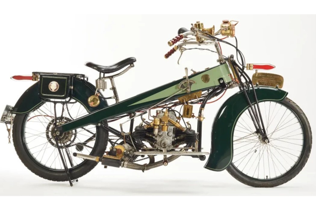 A Hirsch Berlino Anno de 1923 é uma peça rara com mais de um século de história, destacando-se pelo seu design único em madeira e motor twin de 350cc