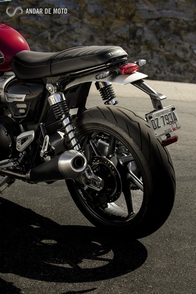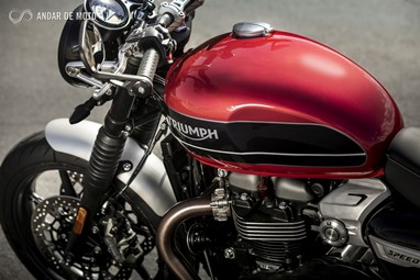 A Speed Twin pretende transmitir o verdadeiro espírito de uma Cafe Racer, desprovida de tudo o que não seja fundamental e focada sobretudo nas prestações dinâmicas, mas garantindo uma posição de condução ergonómica e confortável.