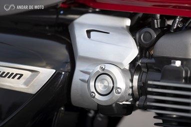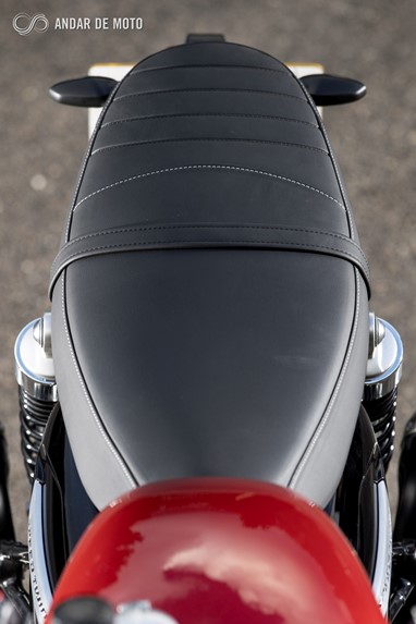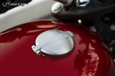 O nível de acabamento é muito bom, com pormenores requintados, como a capa do tampão do depósito de combustível, do estilo “Monza”, em aço polido, ou o desenho dos corpos de admissão, ou dos suportes do guarda-lamas dianteiro e do farol, ou os muitos pormenores em aço escovado.