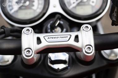 Na prática, a nova Speed Twin é tudo isso, pois integra toda a mecânica da Thruxton básica: Motor, quadro, suspensões e travões, são os mesmos, mas instala um guiador elevado que torna a condução menos castigadora para os pulsos e costas. Além disso a Speed Twin pesa apenas 196kg a seco, menos 10 do que Thruxton. As novas jantes de 7 braços, fabricadas em Alumínio, ambas de 17 polegadas, são as principais responsáveis por essa redução do peso.