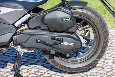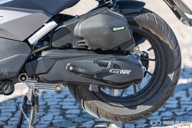 Nota-se claramente que a injeção está bem afinada, e que a Keeway deu preferência a uma resposta mais forte na passagem dos baixos para médios regimes. Basta uma aceleradela mais contundente no arranque de um semáforo para sentirmos os 10,7 Nm de binário a empurrarem rapidamente os 134 kg do conjunto para uma velocidade de 80 km/h. A partir daí a subida de rotações é mais lenta, e a velocidade máxima é ligeiramente superior a 100 km/h.