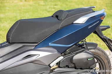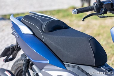 Para o passageiro o conforto não é mau. O assento tem uma boa largura, e os apoios para as mãos estão bem posicionados para não fazermos grande esforço, seja nos momentos de travagem ou em curva. No entanto, a aresta mais vincada da carenagem traseira fica a tocar na perna do passageiro. Com o movimento da moto, e ao fim de poucos quilómetros, o passageiro vai começar a sentir-se incomodado.