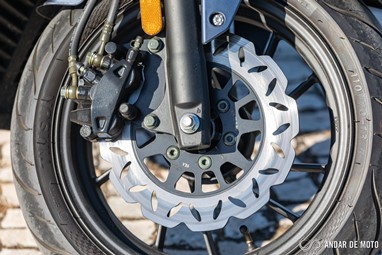 A travagem fica algo comprometida pela ausência da ABS. Talvez para manter os custos de produção num nível mais baixo, a Keeway optou por travagem combinada. Isso retira um pouco de segurança. Mas felizmente a travagem proporcionada pela pinça de dois pistões a morder um disco de 240 mm, de desenho recortado, garante eficácia.
