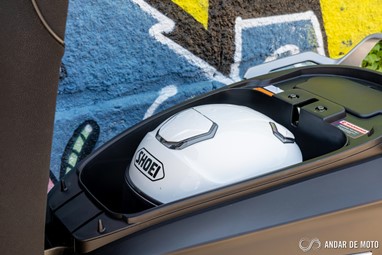 guardar um capacete jet. O espaço que sobra dá apenas para uma carteira ou