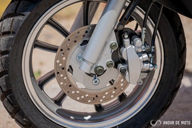 composto por disco dianteiro e travão traseiro, com acionamento combinado, a