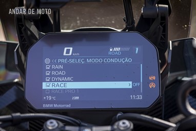 O modo Race permite configurar vários settings ligados à acção do controle de tracção, intervenção do ABS, anti-wheelie, suspensão, amortecimento da direcção… Todo um patamar de possibilidades que nos permite aflorar os nossos limites em ambientes controlados.
