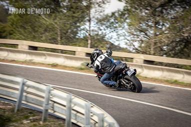 O limitador surge perto das 14,5k rpm, e o pico de potência está já ali (nas 12,750 rpm), mas naquela pequena recta em que passo de 2a para 3a (para depois picar o travão da frente ganhando compostura para a abrupta sequência que se segue, sempre a perder velocidade), acabo sempre por cortar o gozo cedo demais.