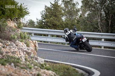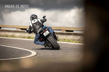 Este motor é tão avassalador na sua resposta nos médios regimes, que não preciso de “viver” no último terço para ser consistente na fluidez. Pendurado na lateral, forçando a postura, consigo deixar a máquina trabalhar a entrada e saída de curva, confiando primeiro na acutilância da sua direcção e depois na sua absurda capacidade de tracção.