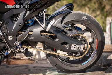 Os menos 4 kg de diferença podem chegar a 7 kg se optarmos pelas jantes em carbono e pela bateria de lítio (ficando a cifra nos 227 kg), sendo que a menor massa não suspensa melhora substancialmente a dinâmica da moto. No capítulo da electrónica encontramos à nossa disposição toda a capacidade que a RR tem de nos fazer passar por heróis.