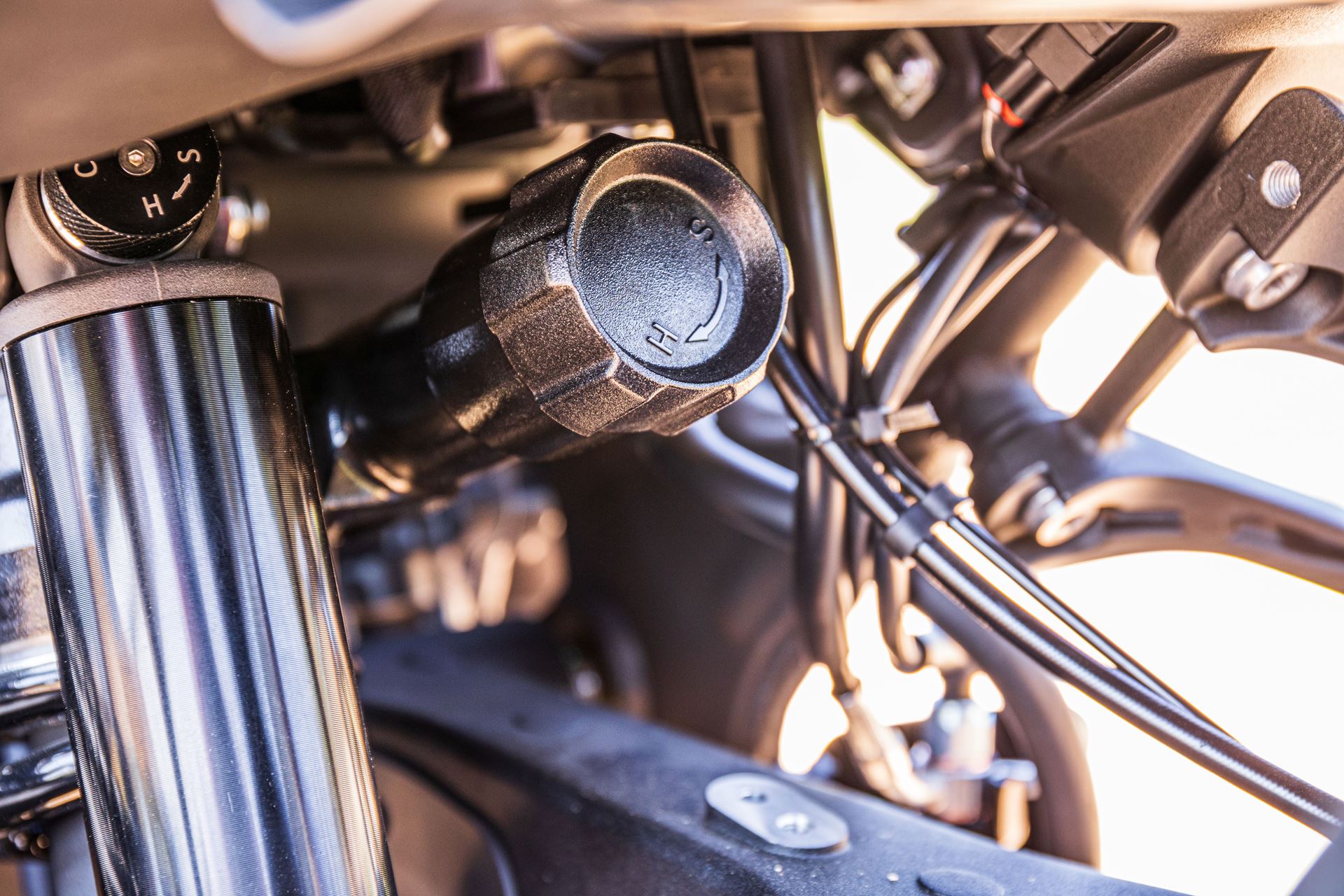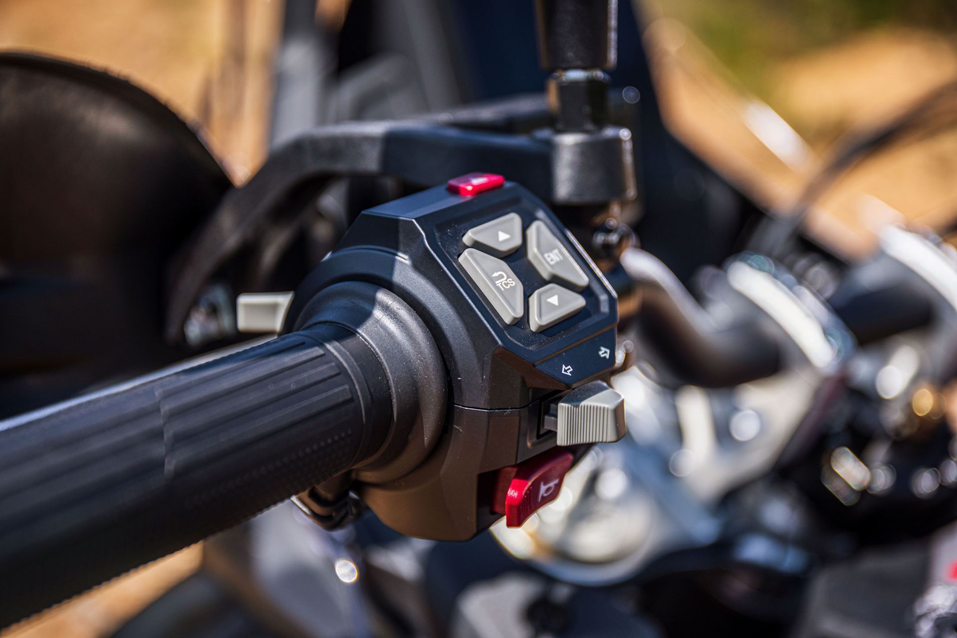 Com os modos de ABS selecionáveis desligando-se completamente ou apenas na roda traseira, controle de tração também desligável e dois modos de condução, poderíamos preparar a máquina para dureza que se antevia.