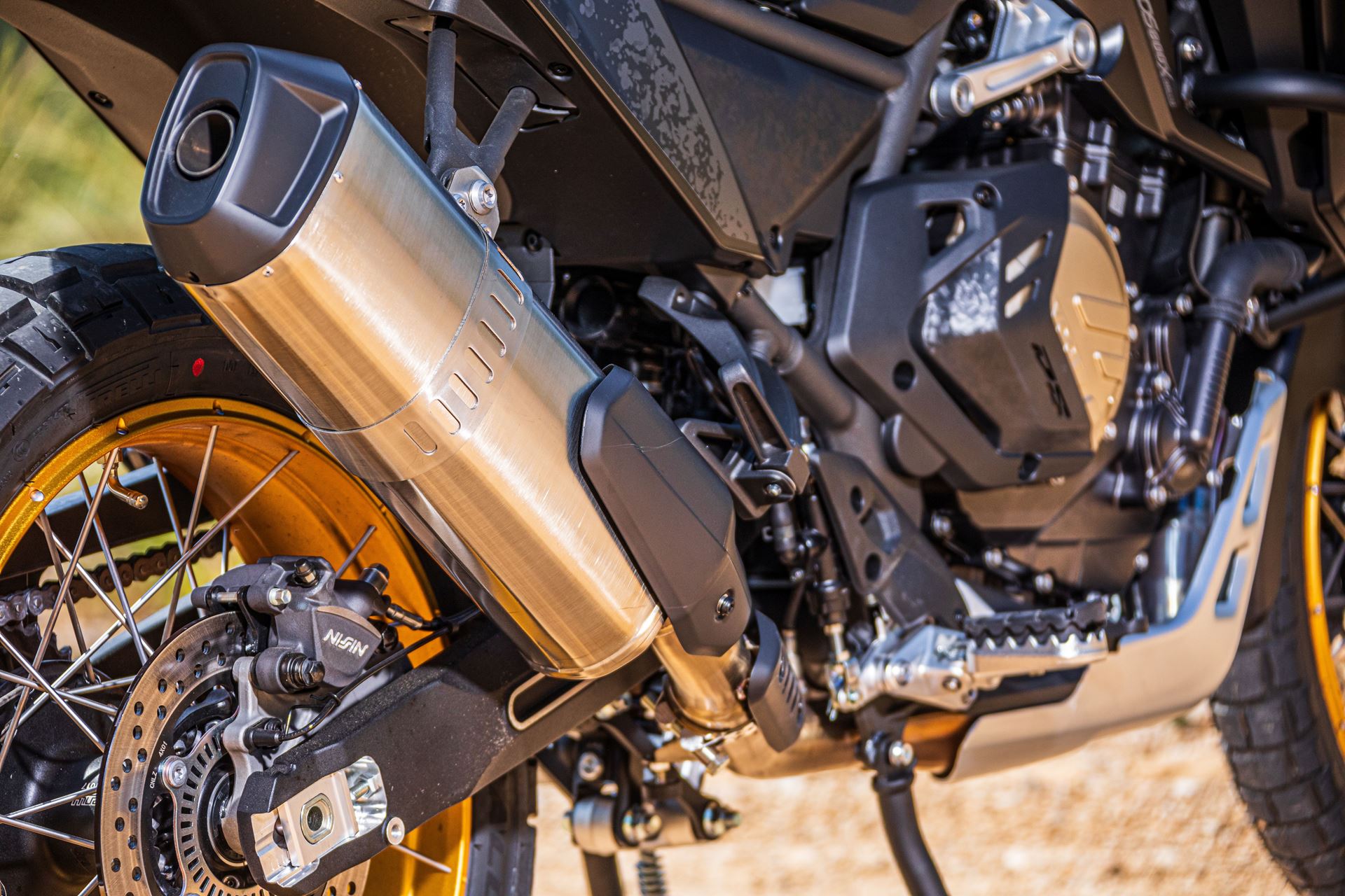 Na travagem a Voge recorreu a travões da Marca Nissin, com duplo disco de 310mm e pinças radiais de quatro pistões na frente, e um generoso disco de travão na traseira que garante um desempenho eficaz e incansável. Pneus Pirelli Scorpion montados em rodas de 21” e 18” garantem uma agradável aderência em estrada.