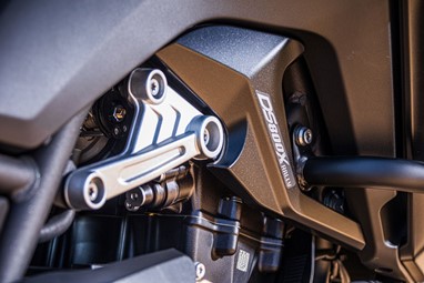 A suspensão KYB, totalmente ajustável para que se possa adaptar a condutores de diferentes tamanhos e a múltiplas condições de condução, conta com uma forquilha de 43mm regulável em pré carga, compressão e extensão com um curso de 200mm, e o amortecedor traseiro, com bielas, conta com depósito de expansão separado e regulação de pré carga, compressão e extensão, com um curso de 190 mm.